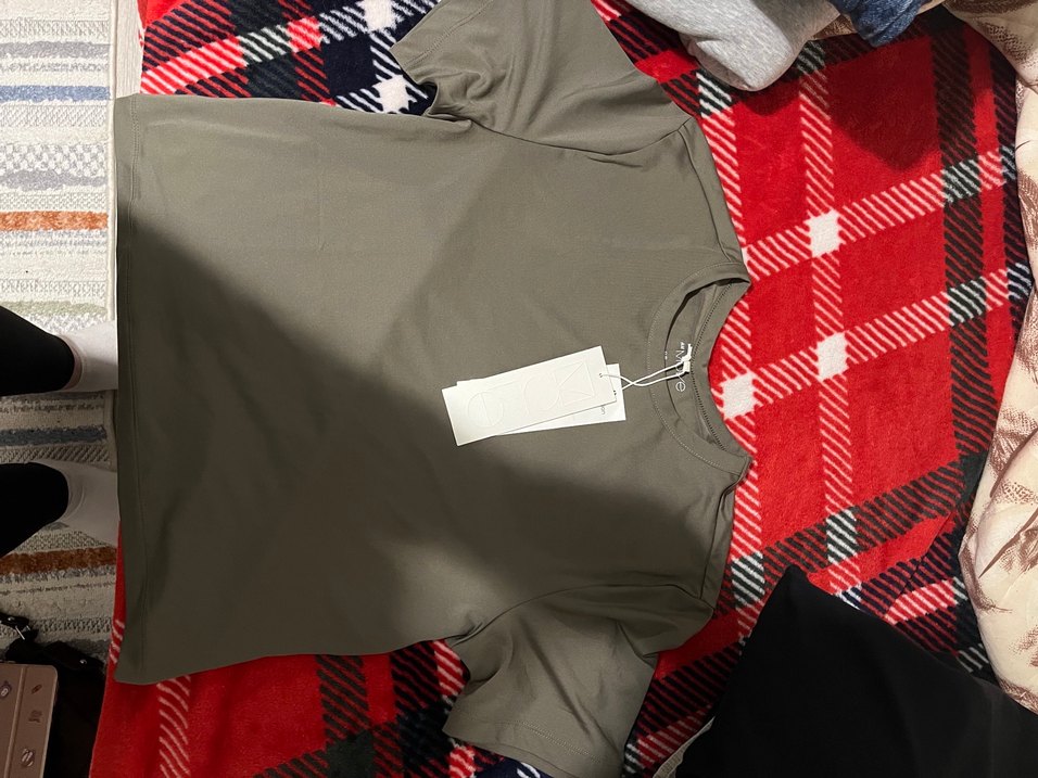 Gri renk, kısa kollu, ve yuvarlak yakalı kadın tişörtü. Sentetik kumaştan yapılmış, günlük ve sokak tarzı için uygundur.