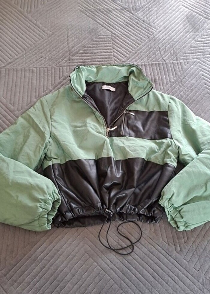 TANINMIŞ BILINMIŞ MARKA dır.Kadjn kışlik crop içi hafif havalı elyaftir kullanıldı 4 yada 5 kere deri detaylı olup fetmuarlidir fermuarinda hiç bir sıkıntısı yoktur bel kısmı ayarlamali lastik vardır tarz dır