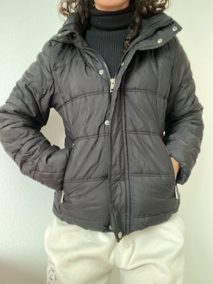 Yumuşak dokulu, fermuarlı ve yüksek yakalı, kadın kışlık mont. Uzun kollu, normal midi boyda, günlük rahatlık için uygun. ❄️ iyi durumda