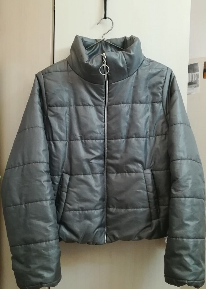 Kadın Kışlık Gri Şişme Mont S/36 Beden Cepli Tamamen sorunsuz
