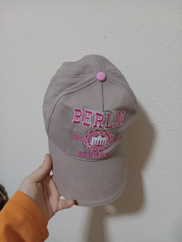 Bej renkli, düğmeli kadın şapkası. Berlin nakışlı, yumuşak ve sıcak kumaştan, bohem ve retro tarzlara uygun.