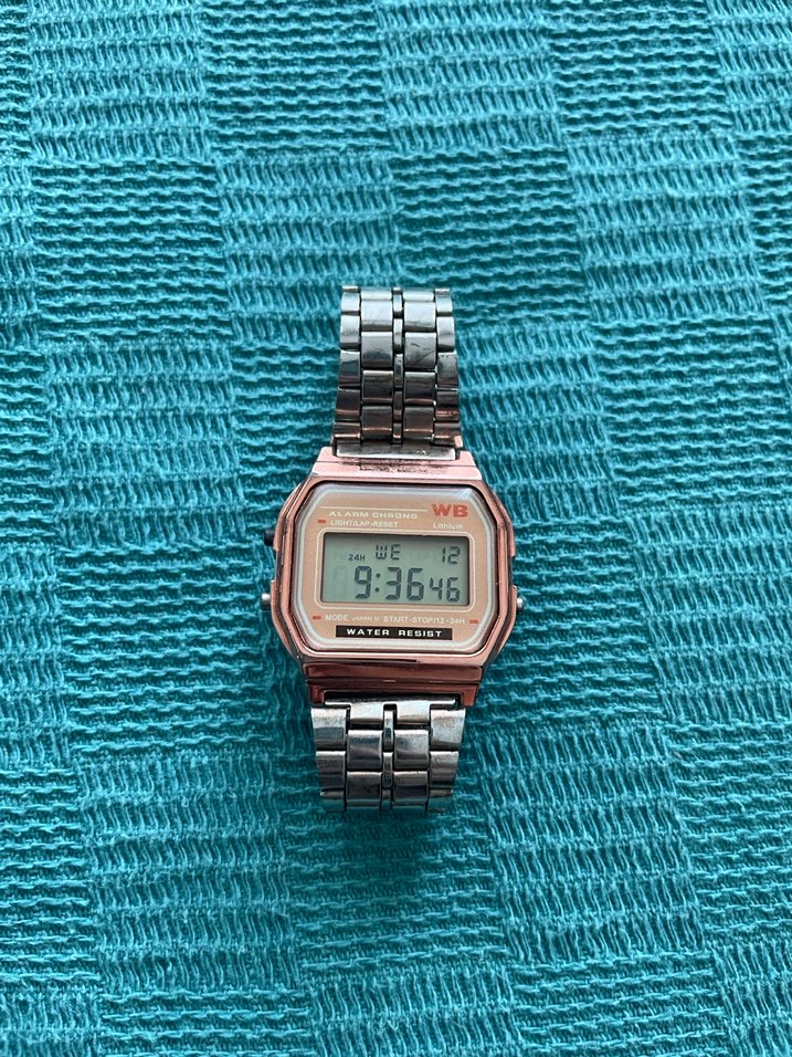 Kadınlar için dijital ekranlı, tokalı metal kayışlı retro tarzda kol saati. Suya dayanıklıdır ve net zaman gösterir. ⌚ Çalışır durumda olan kol saati uzun süredir kullanılmamıştır. Renk solması ve deformeleri mevcuttur. Suya dayanıklıdır. Gold rose rengi günlük kullanıma uygun. Fiyata durumu yansıtılmıştır.