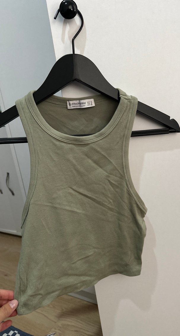 Kolsuz ve bisiklet yaka, midi boyda, vücuda oturan haki renkli kadın atlet