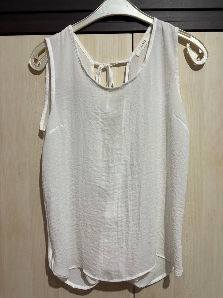 Kadın Kolsuz Beyaz Keten Bluz