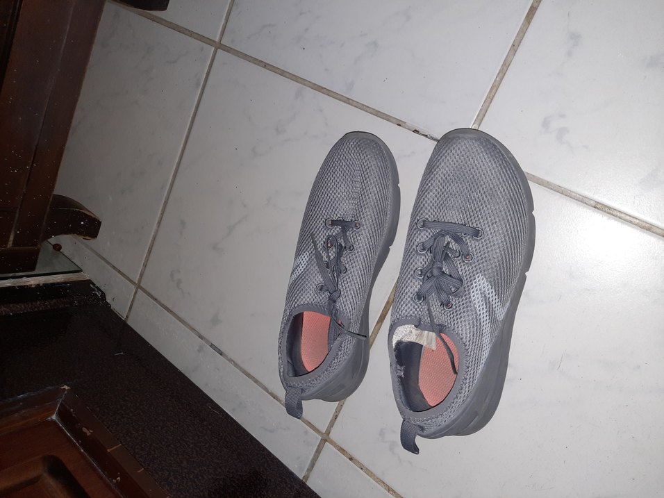 Gri renkte, kauçuk malzemeden yapılmış, Velcro detaylı spor ayakkabısı. ♂️