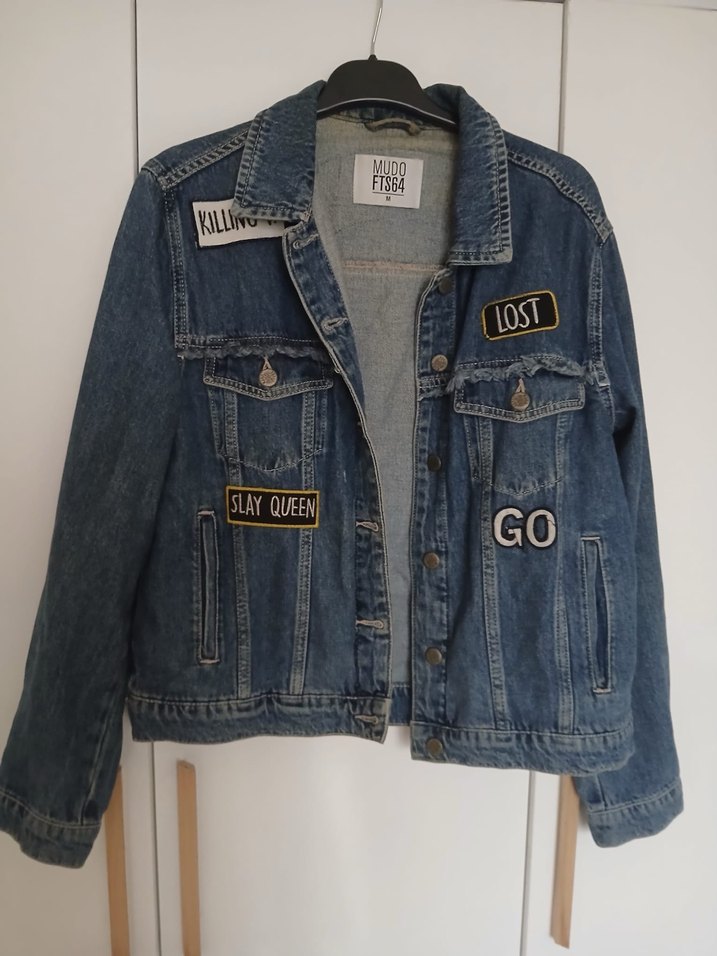 Kadın mavi midi boy yazılı kadın ceket günlük giyime uygun