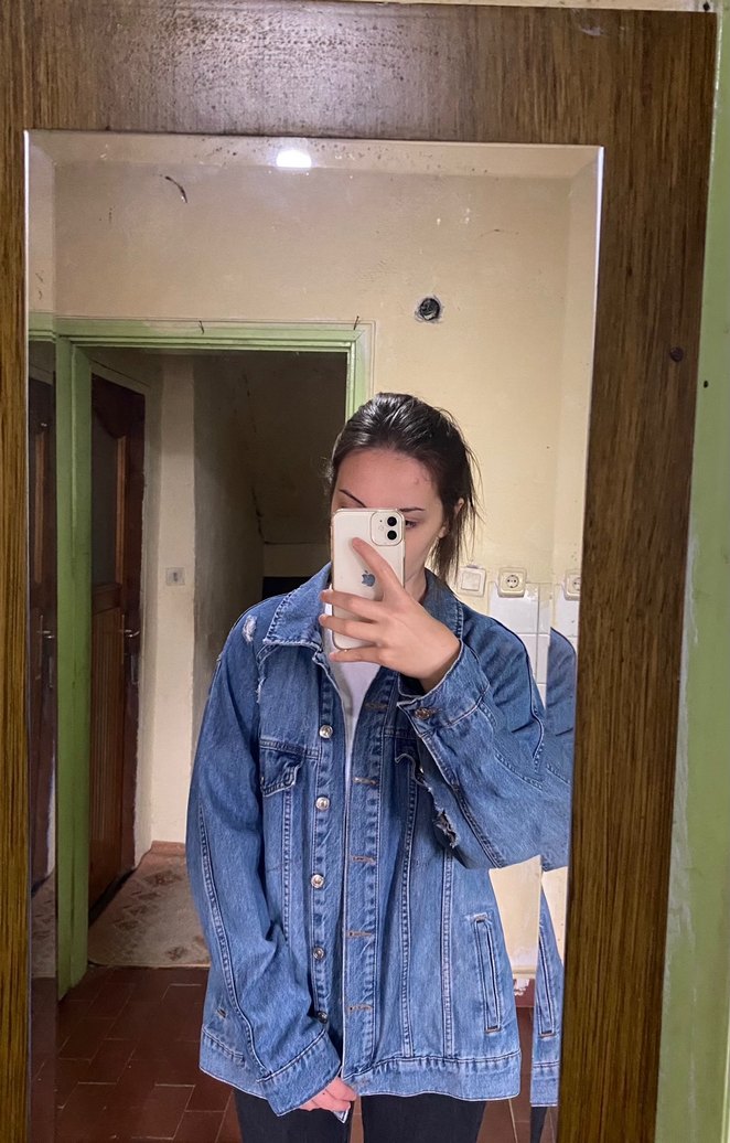 kapalı kadınlara daha iyi gider kalça kapatıyor çok az giyildi tertemiz. oversize dursun diye L beden almıştım. sadece beşinci fotoğrafta cep tarafında terzi dikiş izi var ama kendiliğinden duruyor belli olmuyor