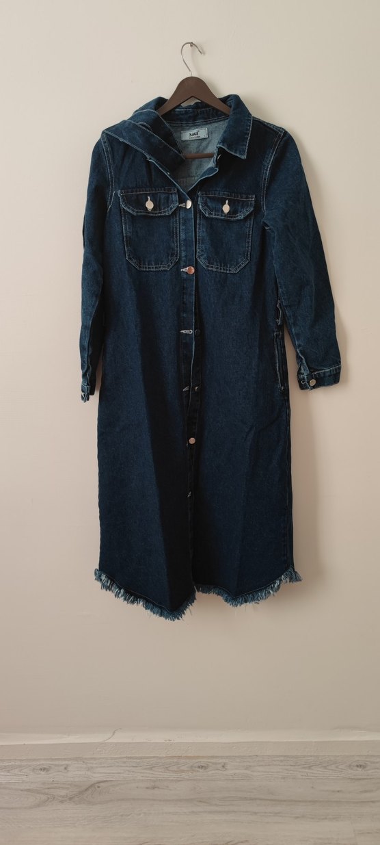 hiç giyilmedi rengi ilk resimdeki gibi ürün boyu 110 gögüs ölçüsü 88 cm cepleri mevcuttur