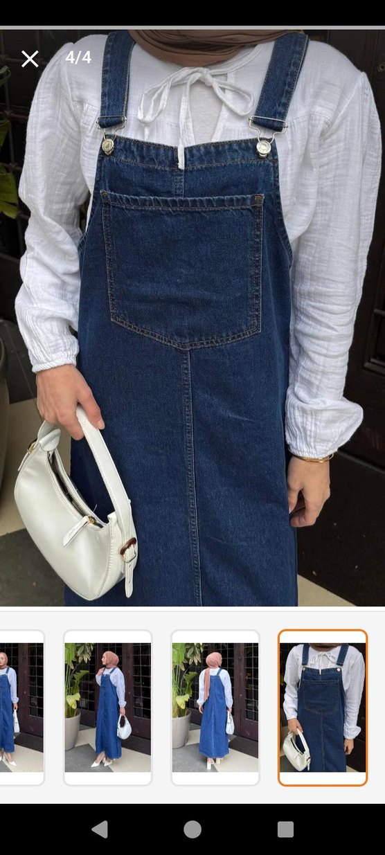 Kadın kot etek, bol kesim ve bel detayına sahip. Askılı, yuvarlak yaka, midi boyda, günlük sokak stiline uygun. Önünde büyük cep bulunur.