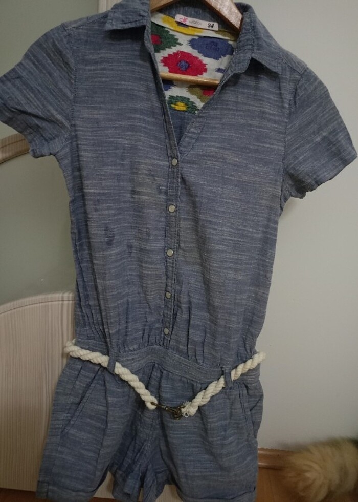 . Ürün kullanılmıştır .Ütünün bıraktığı sarı izler var dikkat edince anlaşılıyor (Ön taraftaki lekeler ütüden kaynaklı geçici su izleridir) . Beli lastikli ön tarafta gerçek arkada yalancı cebi var . xs yazıyor ama s bedenlere de uygundur . Aynı gün kargoya verilir