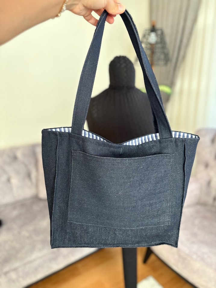 Kot kumaştan yapılmış, fermuarlı ve mavi-gri tonlarında kadın çantası. Günlük kullanıma uygun, sade ve trend görünümlü. El emegidir. İstenilen renkte yapilir