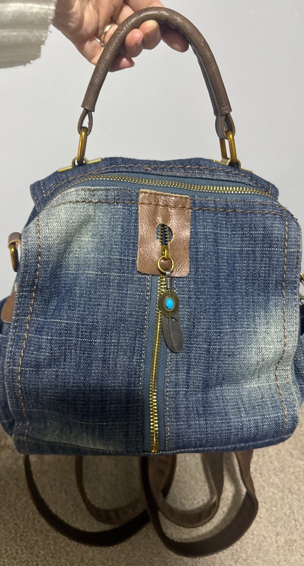 Kadın kot kumaşından yapılmış, fermuarlı ve bohem tarzda bir çanta. Küçük dekoratif bir aksesuar ve taşıma sapı bulunur. Sokak stili ve retro hava taşır.