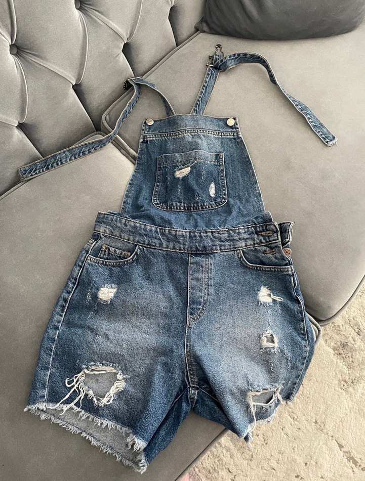 Kadın Kot Mini Tulum, Gevşek ve Askılı