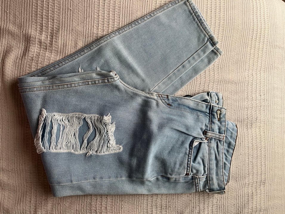 yırtık detaylı kadın pantolon hiç giyilmedi. Marka temsili