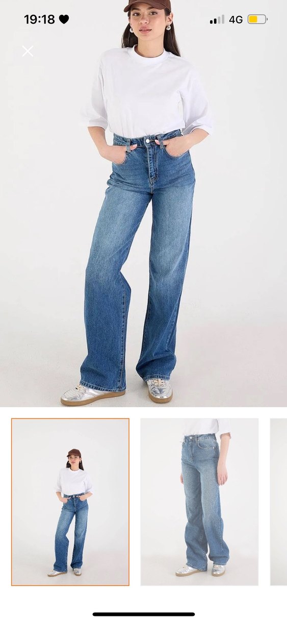 Lacivert renkli, bol kesim kadın kot pantolon %100 pamuk kaliteli kumaşa sahiptir