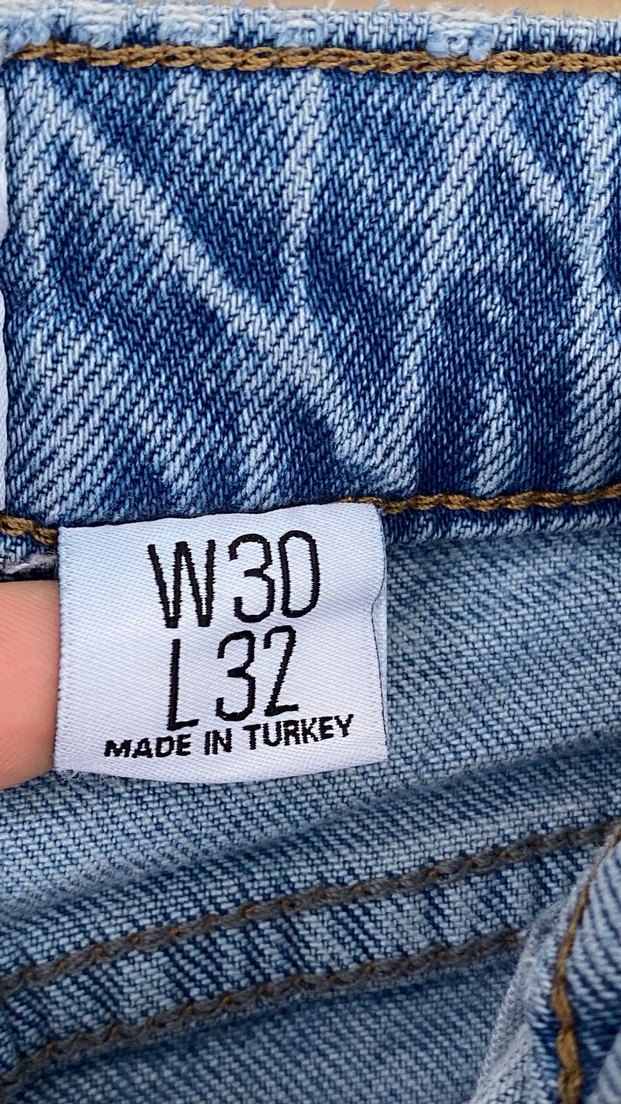 Sokak tarzı, mavi renkli kadın kot pantolon. Türkiye'de üretilmiştir, beden W30 L32. Günlük kullanıma uygundur.