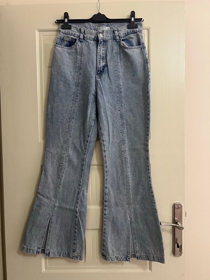 Gri mavi tonlarında, kot pantolon hiç giyilmedi