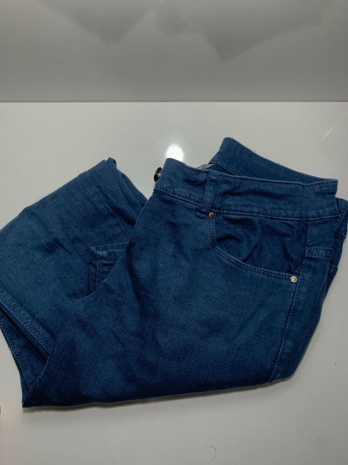 Lacivert renkli, rahat kesim ve midi boy kadın kot pantolon. Günlük kullanıma uygun, desen içermeyen sade tasarımıyla sokak stiline uyum sağlar.