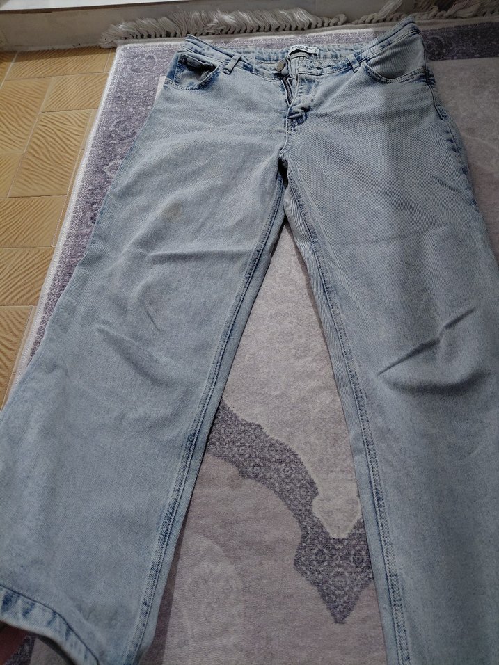 M/L beden,eskitilmiş kar mavisi pantolon, az kullanıldı