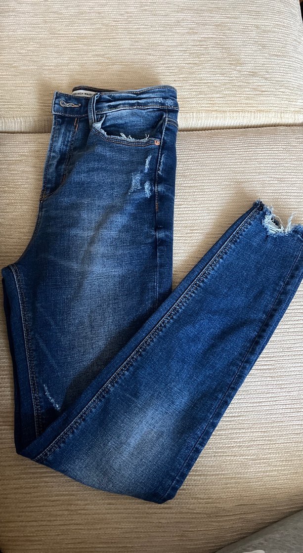 Koyu mavi, dar kesim kot pantolon, normal boyda ve tokalı detaylıdır. Günlük kullanıma uygun, desensiz ve normcore tarzda bir modeldir. herhangi bir defosu yoktur ihtiyaç fazlası hiç giyilmedi