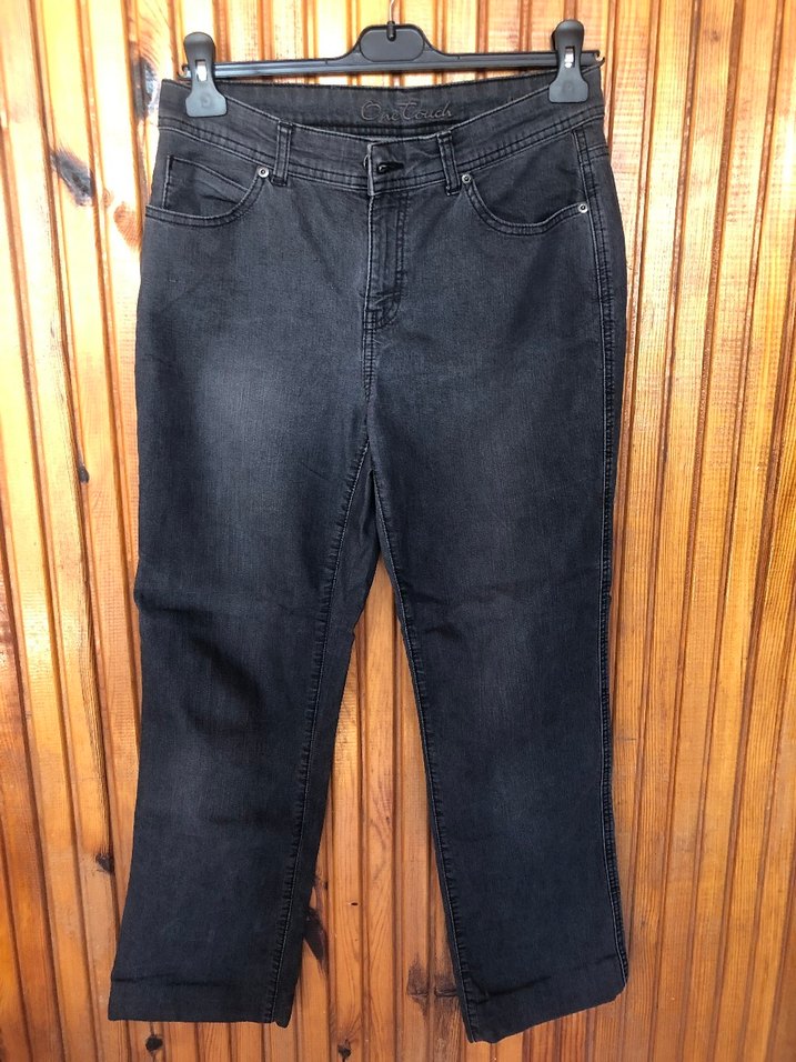 one touch marka füme renkli önden tek düğme ve fermuarlı likralı pamuk polyester karışımı yüksek bel (paçaları uzun geldiği için içeri doğru kıvrılmıştır ) kadın kot pantolon bel 38 cm boy 95 cm bel ve ağ arası 25 cm paça genişliği 20 cm içeri kıvrılan paça 4,5 cm dir
