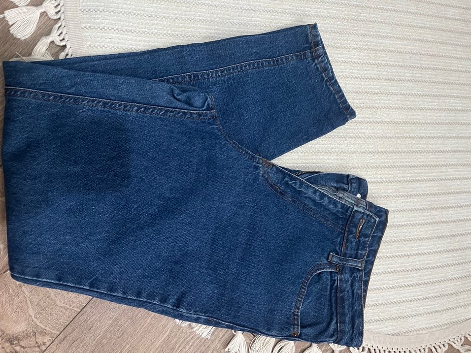 Mavi kot kumaştan, regular fit kesim ve midi boy kadın pantolon. Günlük kullanım için rahat ve şık bir sokak stili sunar.