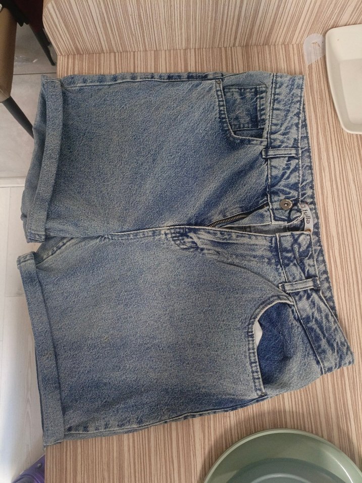 tekli alimda 150 Kadınlar için gevşek kesim, mini uzunlukta gri-mavi renkte sade denim şort. Günlük kullanım için rahat ve şık bir tercih.