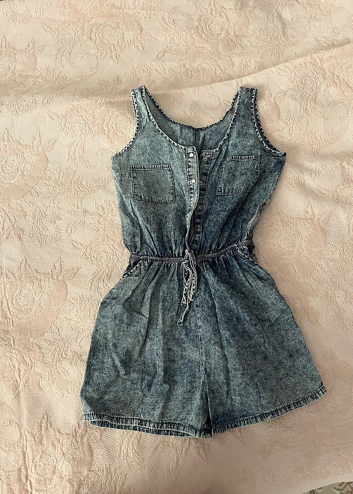 Şortlu lacivert tulum. XS ve S beden ile uyumlu. Defosu yoktur