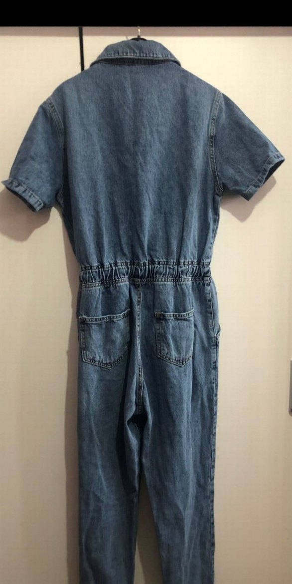 Bol kesim kot tulum, kısa kollu ve yuvarlak yaka. Bel detaylı ve arka cepli, günlük sokak stiline uygun. başka bir platformdan etiketi ile aldım 38 bedenim ama bana hayli bol oldu 40 bedenler için daha uygun etiketini koparsamda bol olduğu için giyemedim o yüzden sıfır sayılır