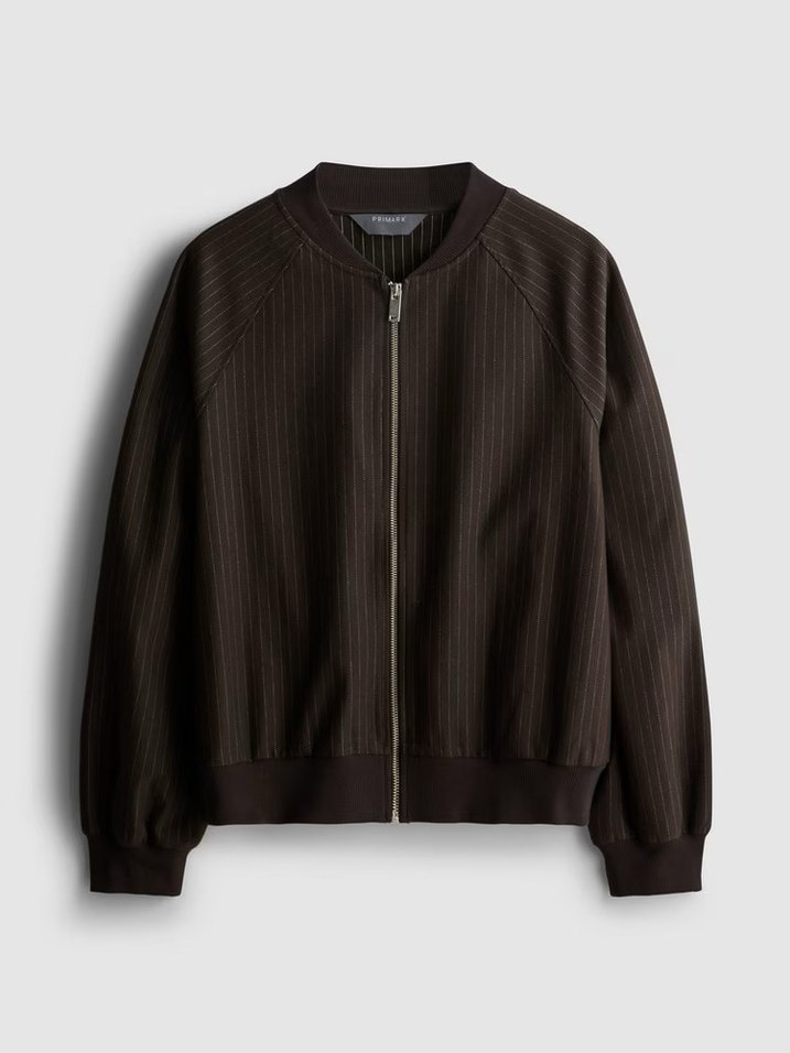 Kadınlar için koyu bej renkte, pilili dokulu, uzun kollu ve yuvarlak yakalı ceket. Düzenli kesimli, fermuarlı ve günlük kullanıma uygun.