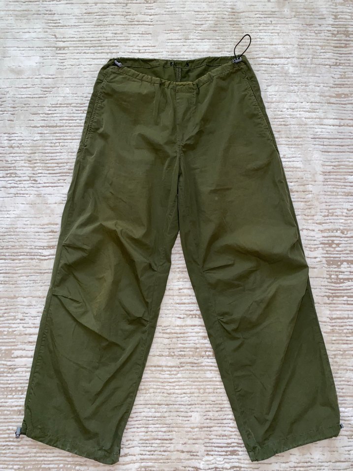 Geçen sene aldım rengını kendıme yakıştırmadığım ıcın çok gıymedım öğrenci olduğum ıcın satıyorum 36 38 bedene tam olur Kadınlar için koyu haki renk keten kumaştan, salaş kesim ve midi boyda, desen içermeyen rahat pantolon. Günlük dış mekan kullanımı için uygun, zahmetsiz şıklık sunar.