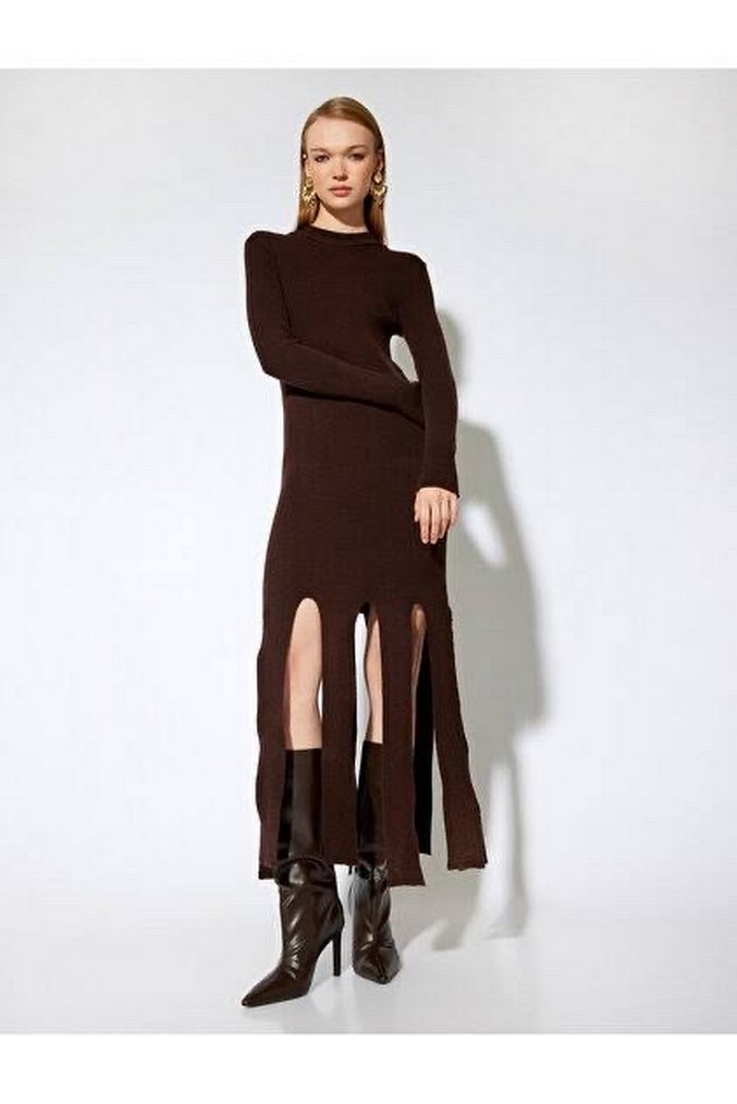 Koton x Melis Agazat Uzun kollu dik yaka asimetrik triko elbise
