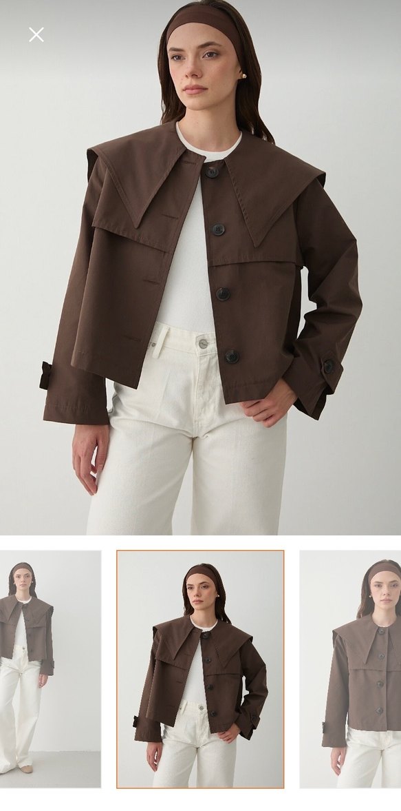 Kadınlar için koyu kahverengi düğmeli, uzun kollu kısa trençkot. Pamuk kumaştan, klasik yaka ve normal kesimle günlük kullanıma uygun. Sadece bir kez giydim rengini kendime yakıştıramadım o yüzden satıyorum s bedendir iade ve taksit imkanı yoktur