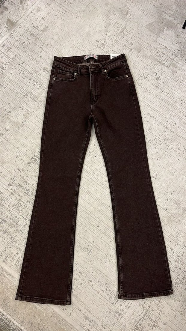 Kadın Koyu Kahverengi Midi Boy Denim Pantolon