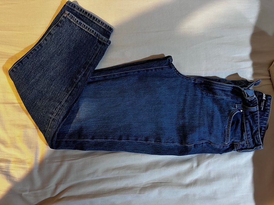 Koyu mavi renkli, basic ve düz desenli, normal boyda, dar kesim kadın denim pantolon. 25 bedendir