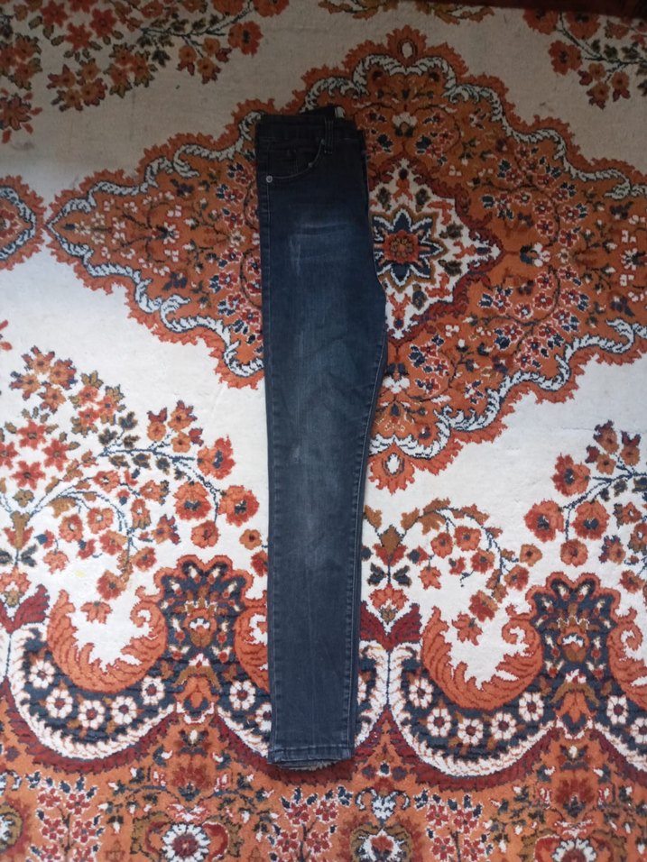 Koyu mavi batik desenli, kemerli ve midi boy regular fit kadın jean. Denim malzemeden, günlük rahat sokak stili için uygundur.