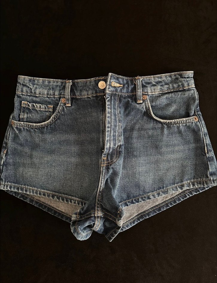 Koyu mavi kot şort, günlük rahat kullanım için uygundur.