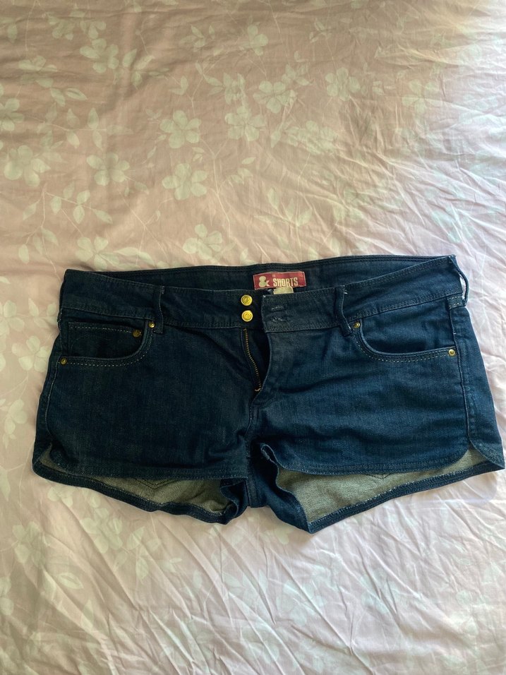 Düğmeli, dar kesim düşük bel koyu mavi mini kot şort. Sokak stiline uygun, desen içermeyen rahat bir model. 40-42 beden uyumlu rahat ve çok çekici . Bir kere giydim