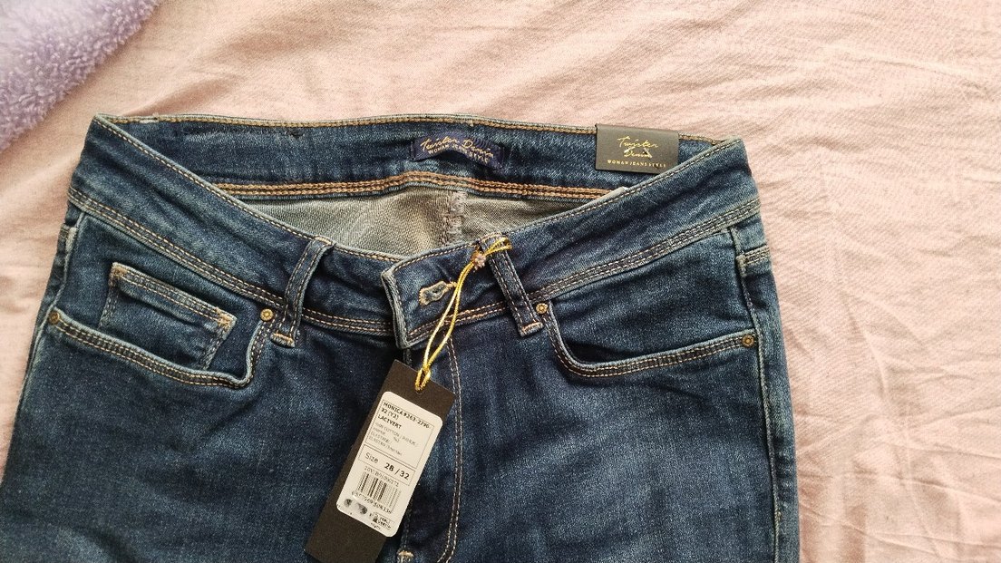Kadınlar için koyu mavi, regular fit kesim, kemerli detaylı denim pantolon. Günlük rahat sokak stili için uygundur.