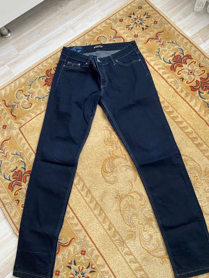 Kadınlar için koyu mavi regular fit kot pantolon, tokalı detaylı. Uzun boy, desensiz ve günlük sokak stiline uygun. Bel 42 kalça 51 boy 104