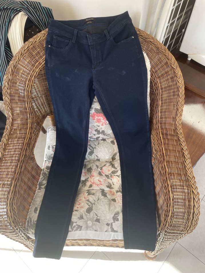 Koyu mavi renkli, normal midi boyda, slim fit kot pantolon. Tokalı detaylara sahip, günlük rahat sokak stili için uygundur.