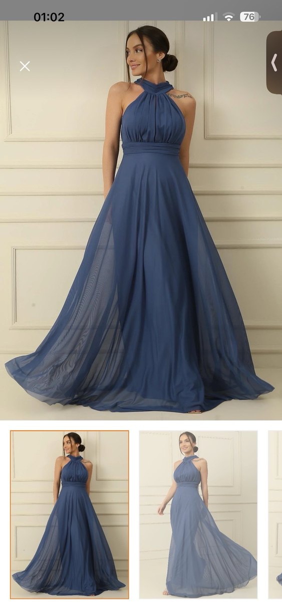 Kadınlar için koyu mavi, uzun abiye elbise. Yüksek yakalı, askılı ve drapeli tasarıma sahip. Düzenli kesim ve modern klasik stil, düğünler için uygun. Desensiz. İndigo rengi, içi astarlı dışı tül elbise. etiket bedeni 42 fakat dar kalıp 38-40 bedenlere daha uygun.