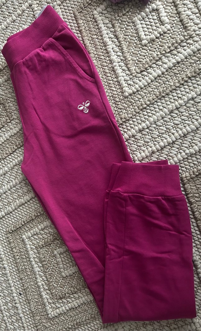 Kadınlar için koyu pembe, bol kesim eşofman altı, sentetik kumaştan ve fermuarlı ceplerle spor veya günlük rahat kullanım için uygundur.