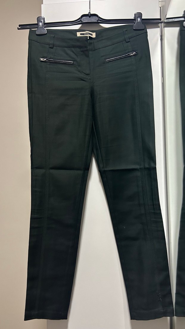 Kadın koyu yeşil deri Fermuarlı Kumaş Pantolon