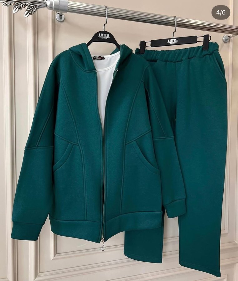42-44 bedene rahat olur (Normalde 46 beden ama dar kalıp o yüzden 44 bedene kadar anca olur) Kadınlar için koyu yeşil, fermuarlı, eşofman takımı. Yumuşak ve sıcak üç iplik kumaştan, uzun kollu ve bisiklet yaka, günlük rahat tarz için uygun.