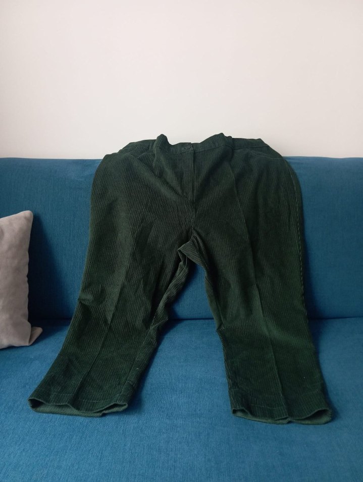 Koyu yeşil kadife kumaştan pantolon.Özel yapım 4XL 48 50 bedene olur marka temsili bel ölçüsü 48 ama Lastikli . Lastikli halıni açınca 60 oluyot