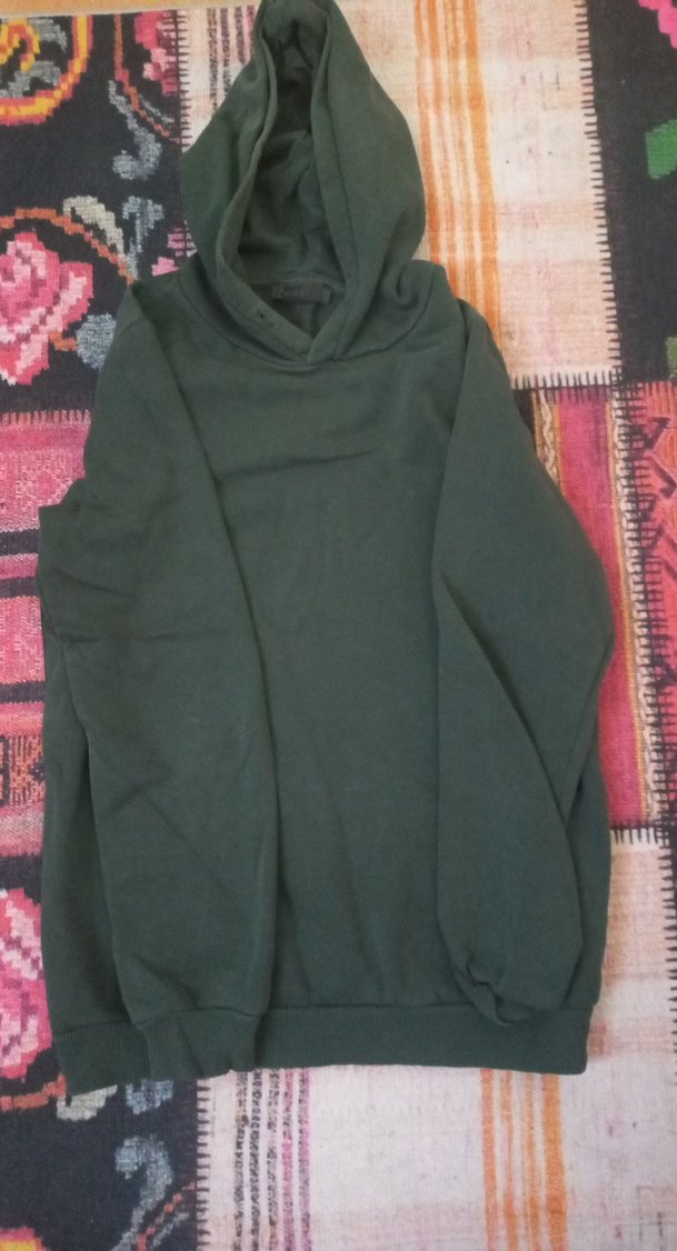 Koyu yeşil renkte, kapüşonlu ve salaş kesim uzun kollu sweatshirt. Yumuşak ve sıcak kumaştan, günlük rahat kullanıma uygun şık bir parça. ipi yok