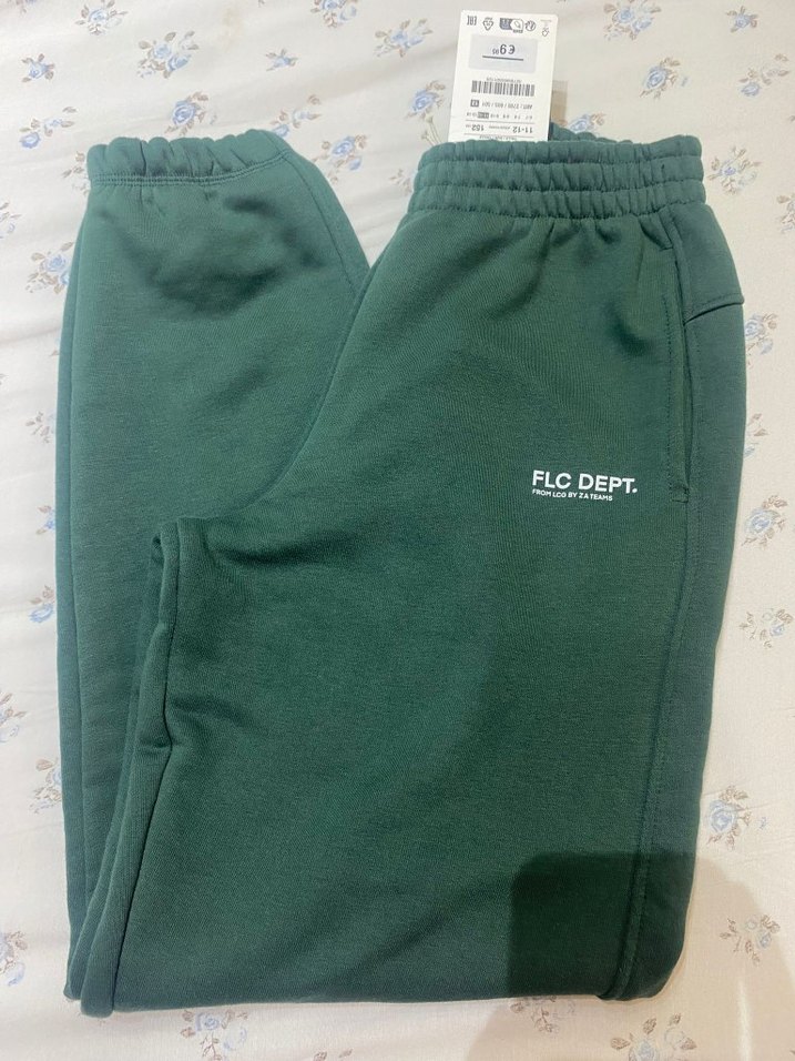 erkek çocuk için koyu yeşil, rahat kesim ve normal boyda, yumuşak kumaştan eşofman altı. ve 'ELC DEPT.' baskısı bulunur.