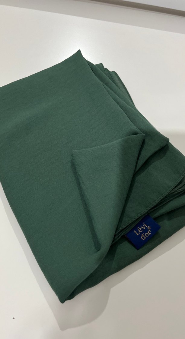Kadınlar için koyu yeşil, saten, drapeli şal. Minimalist ve sokak stiline uygun.