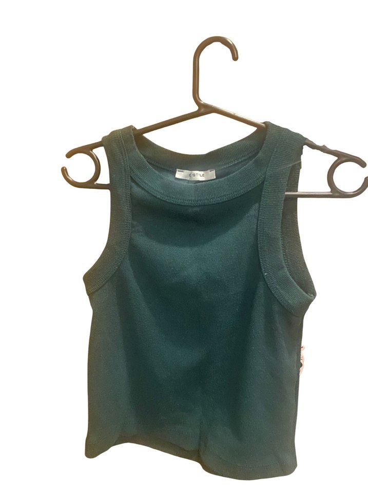 Kadınlar için yüksek yakalı, fitted kesim koyu yeşil renkli atlet. Sentetik kumaştan üretilmiş, minimalist ve günlük kullanıma uygun.